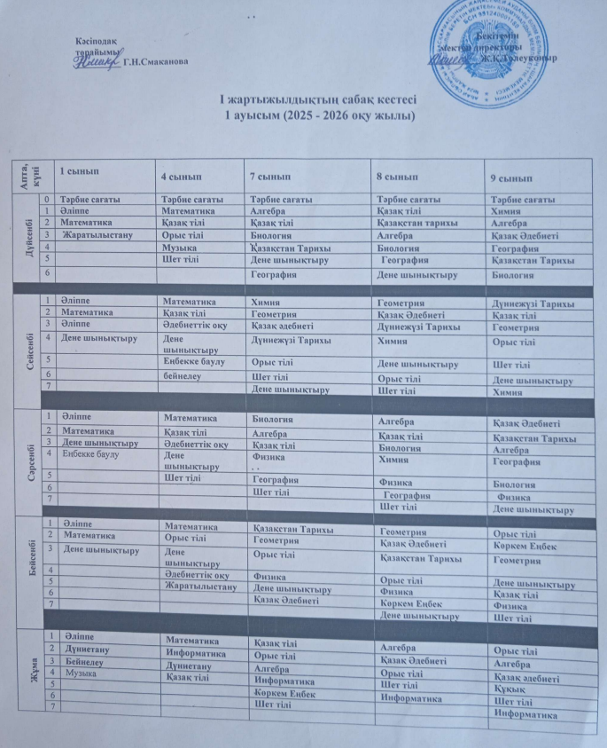 Сабақ кестесі