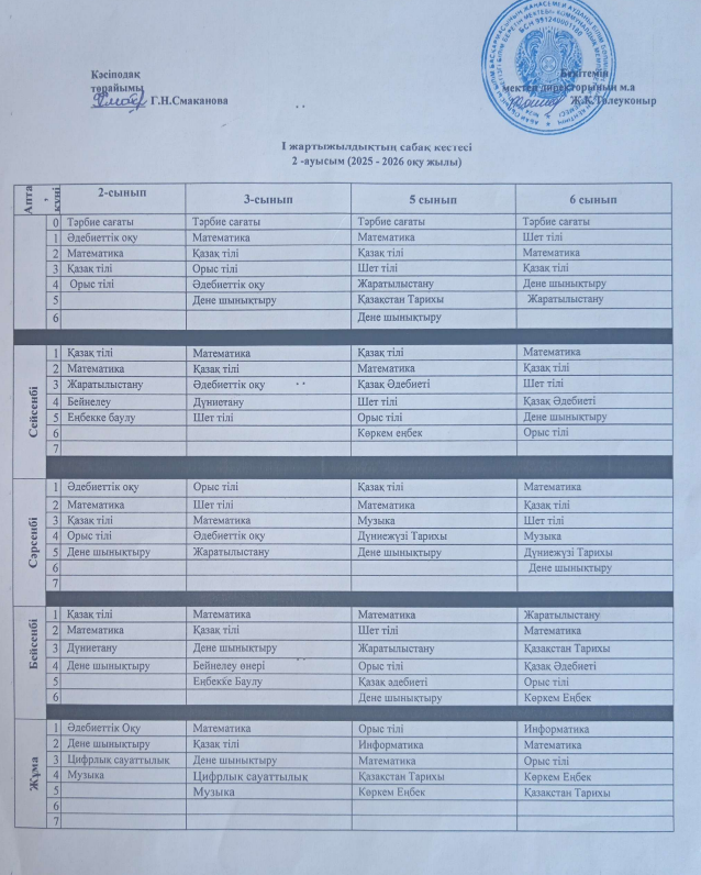 САБАҚ КЕСТЕСІ